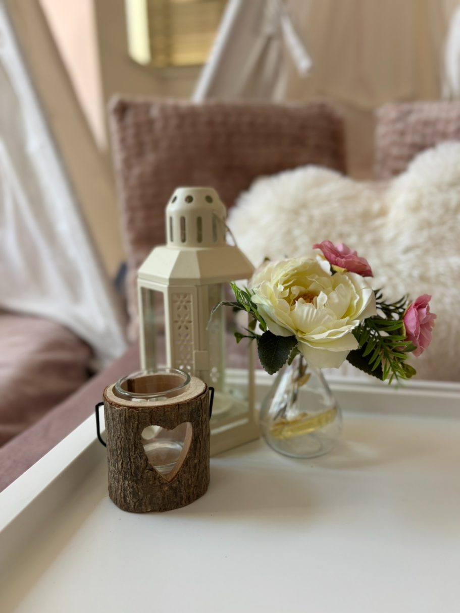 Think soft fabrics, glowing lights and a hint of shimmer. A cosy, elegant escape for a truly special night in.