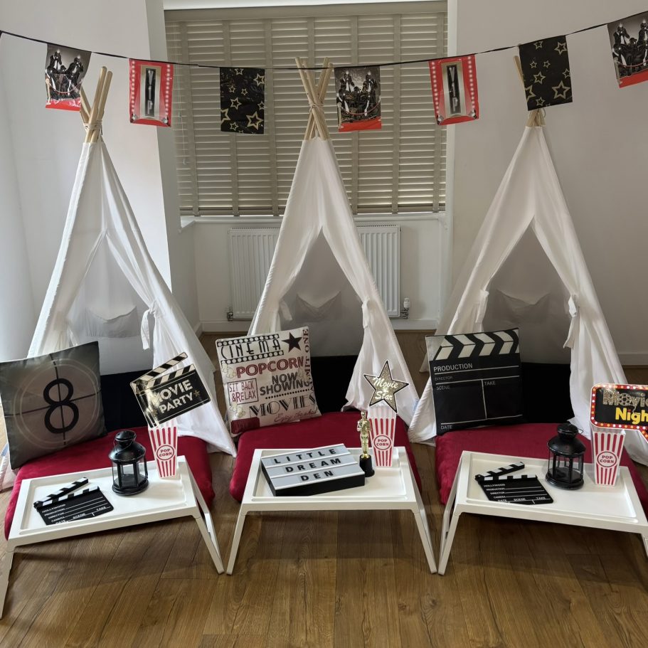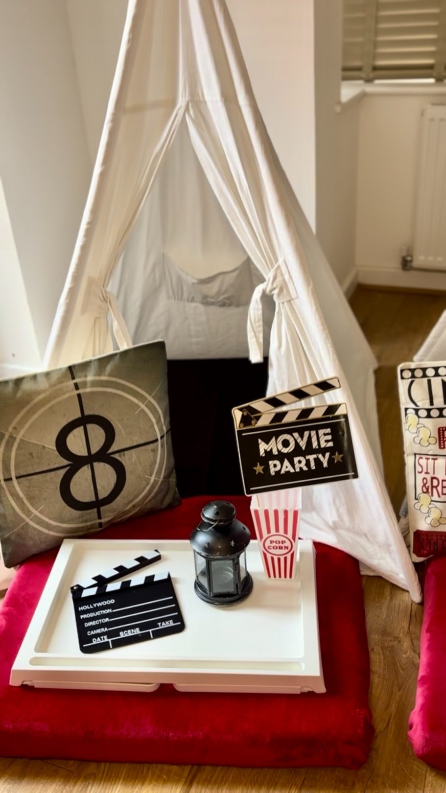 Lights, camera, action! Popcorn, fairy lights and starry details create the ultimate cinematic experience.