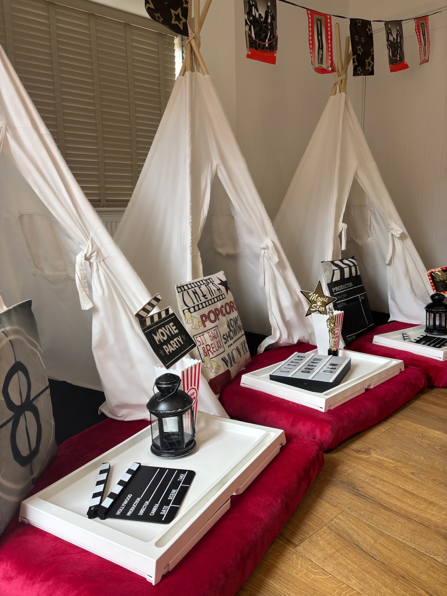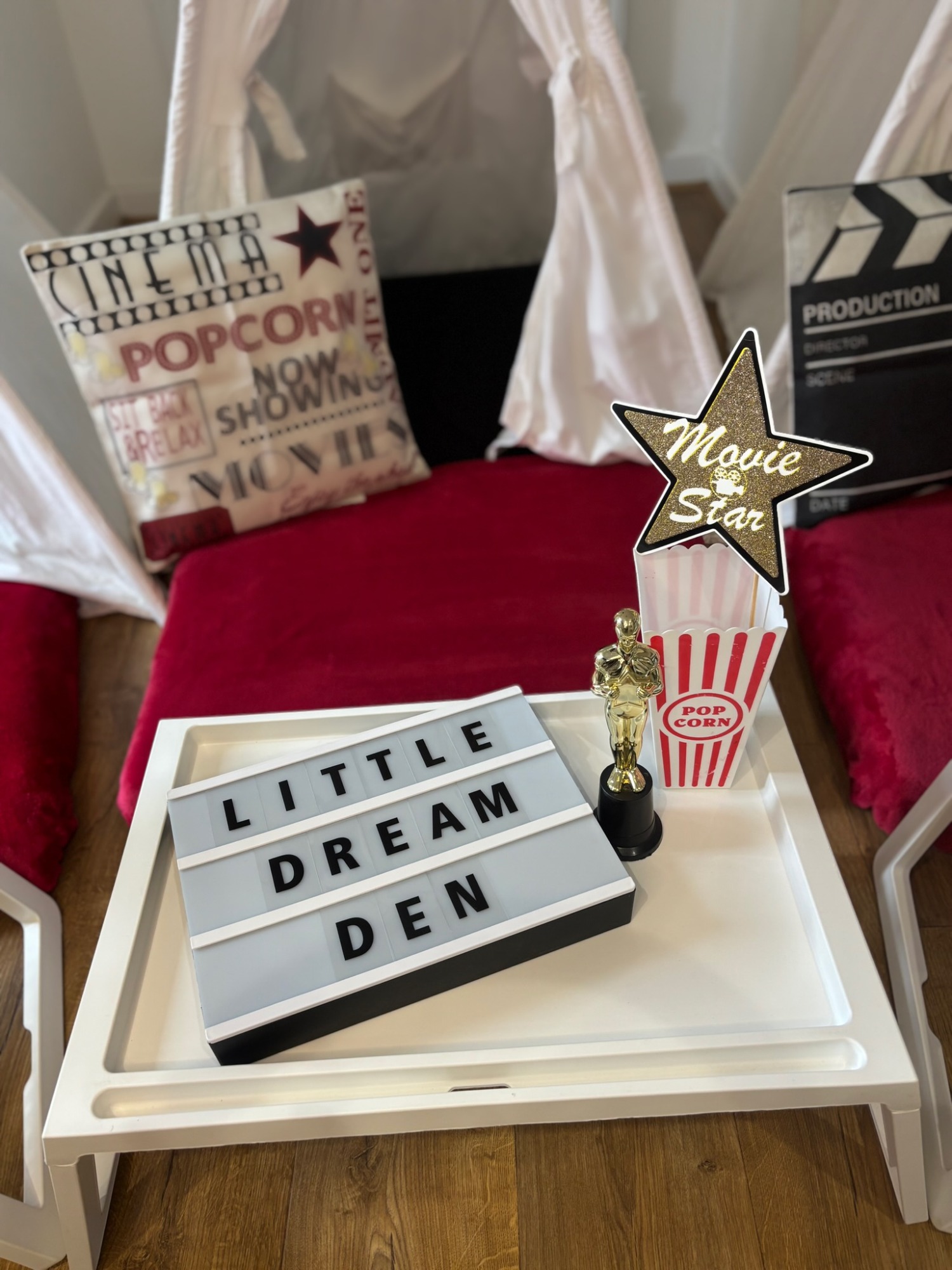 Lights, camera, action! Popcorn, fairy lights and starry details create the ultimate cinematic experience.